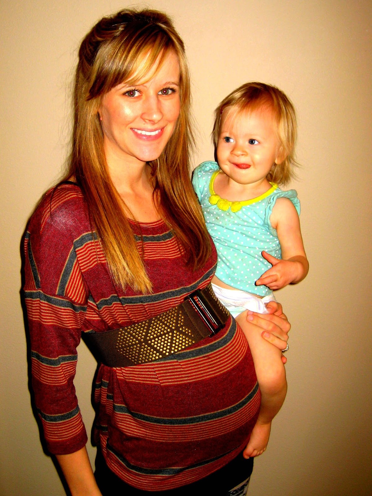 You are looking so cute. Sorry about all the symptoms... but at least it's flying by! My second pregnancy went by so fast too and I think caring for a toddler keeps you so busy that you lose track of time. Oh, and the way that Luella's crossing her fingers - Shayla does that ALL of the time too!