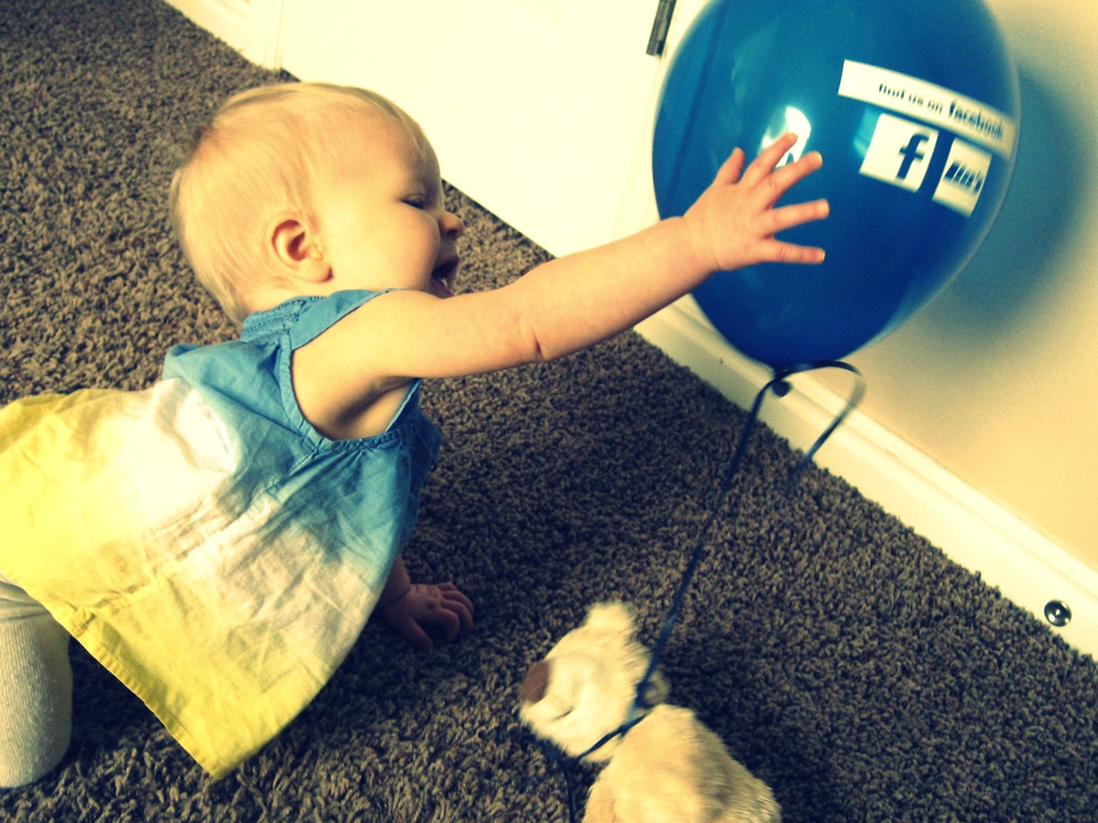 This old man grocery bagger gave Luella a Facebook balloon today. He leaned over to tie the balloon around her arm, but she wouldn't have it. She pushed his hand away and gave him such a dirty look. This little girl has some attitude. She is 10 months-old and knows what she wants and isn't afraid to let anyone know it.
