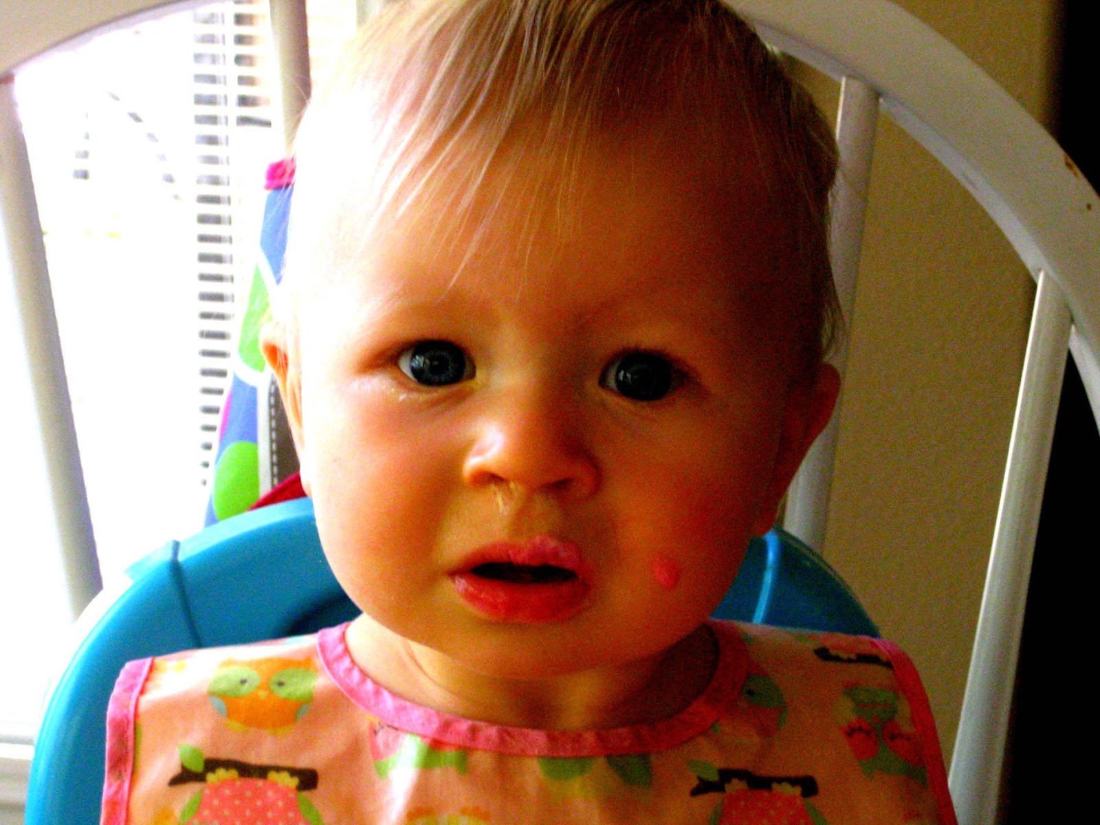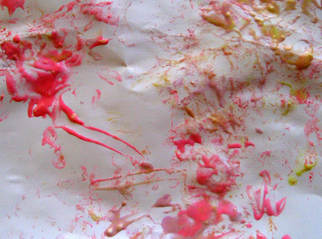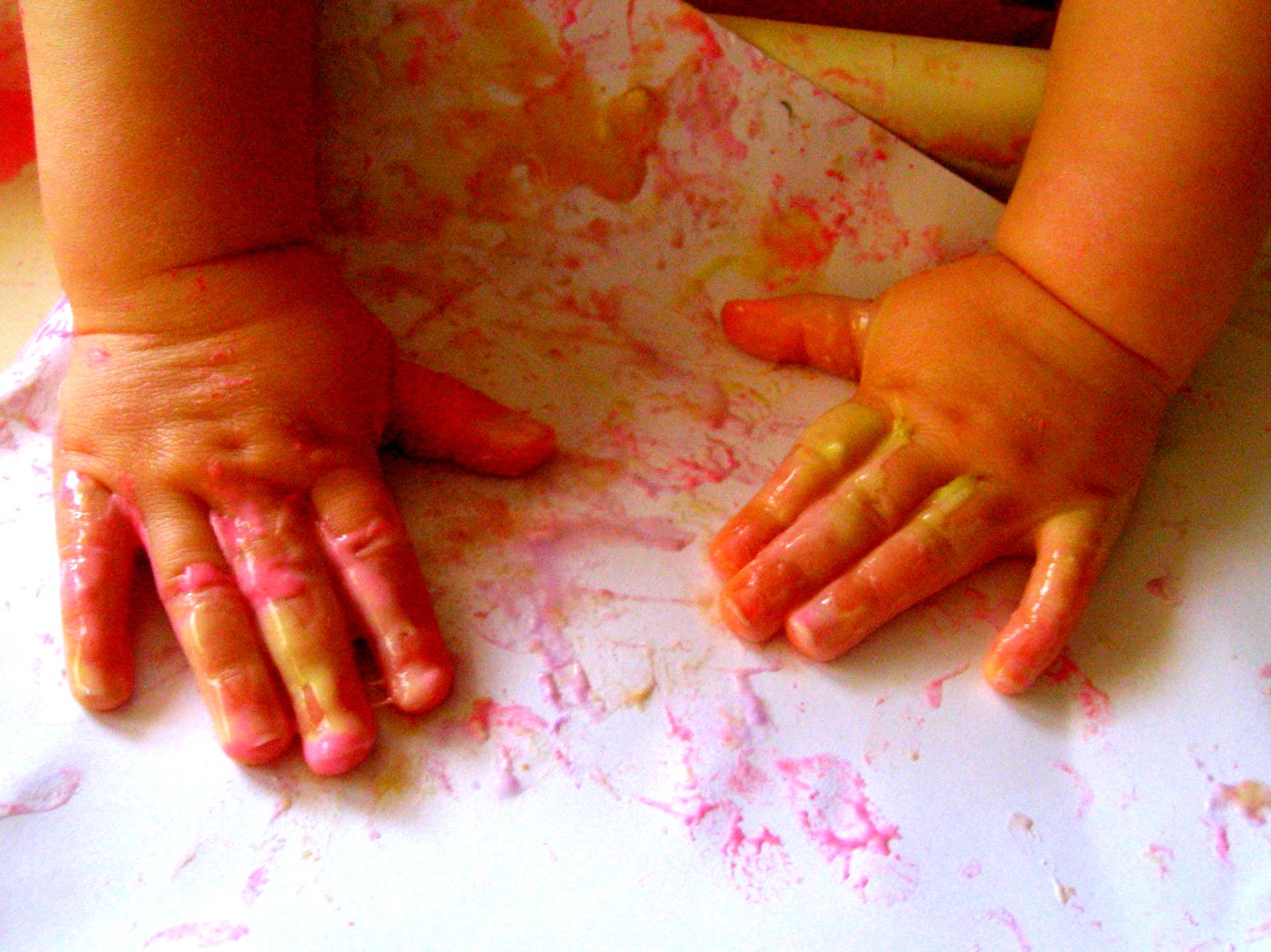 I found a great recipe for homemade finger paint made from flour and water, which is great because I wasn't paranoid when her fingers went to her mouth.