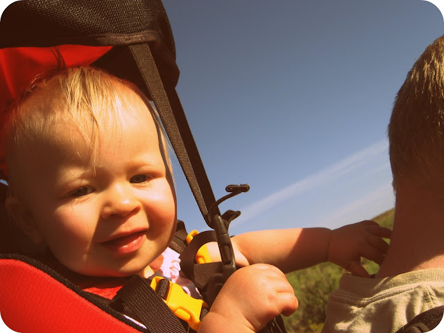 something to remember: Brett enjoyed a little neck massage via Luella before our hike--looks like we'll have to duke it out to see who gets to carry her in the backpack from now on.