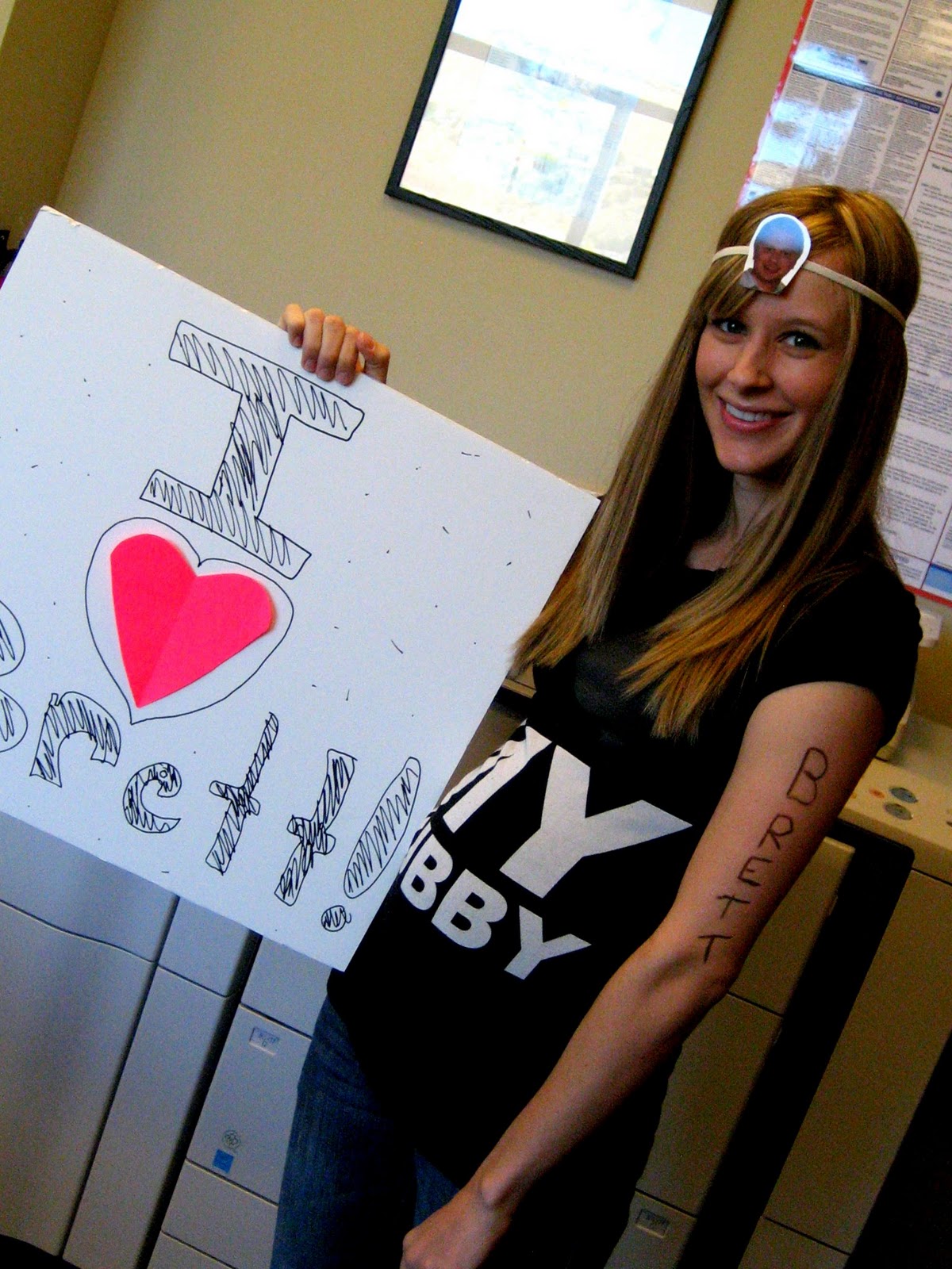 Such a cute costume...or is it just the adorable little person wearing it? Darling pictures and we wish we could have been there to give her some treats! Ashley did you get a Brett tattoo...how sweet! :)